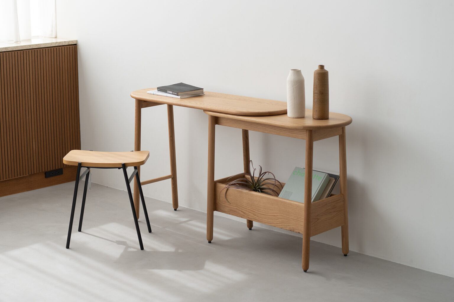 【Console Table SUK / コンソールテーブル スーク】NO WHERE LIKE HOME(ノーウェアライクホーム) / 関家具 | 丸みを帯びた無垢の造形美と、伸長する機能性を備えた多目的デスク