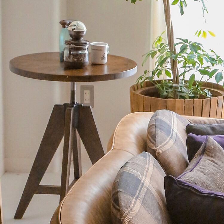 I.JOHがお届けするKnot antiquesのシド ラウンドテーブルは、天板を回転させることで高さを調整できる、機能的かつ意匠性に優れたテーブルです。