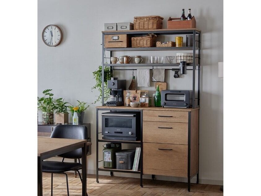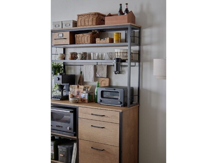 天板下にはコード収納スペースと配線孔が付いているので、煩雑になりがちな調理家電の配線も整理できます。