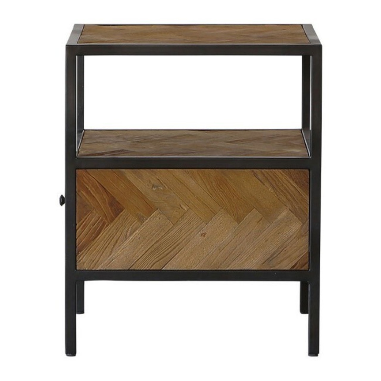 ヘリンボーン柄の古木のデザインが個性的なサイドテーブルです。