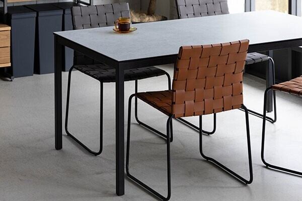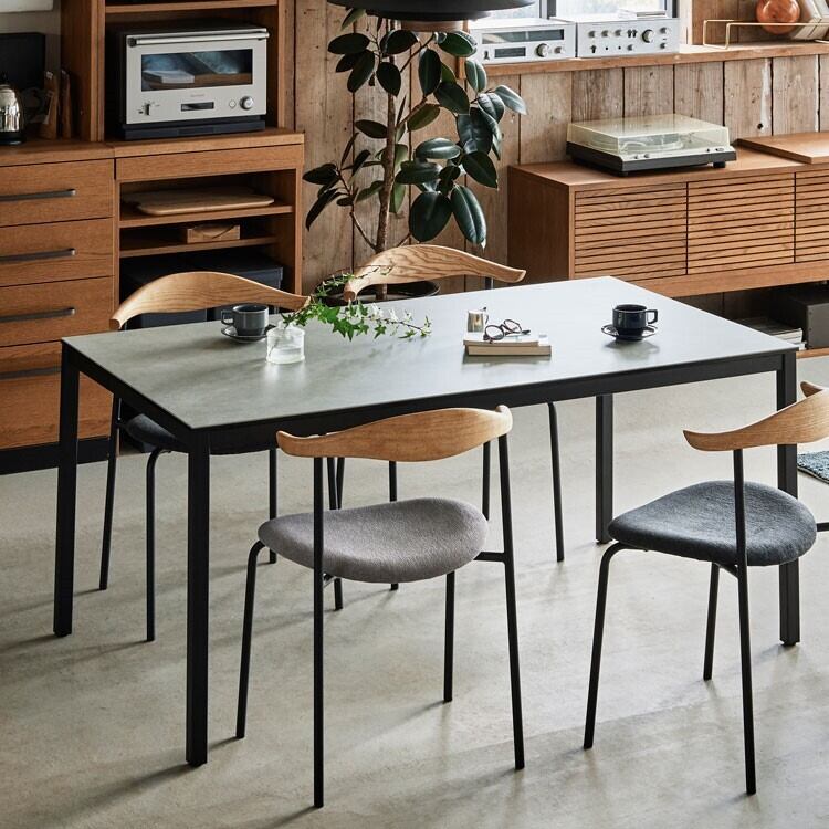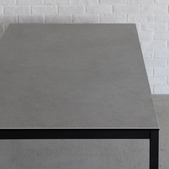 モダンな雰囲気を併せ持つセラミック天板と、無骨なスチール脚をバランス良く組み合わせました。